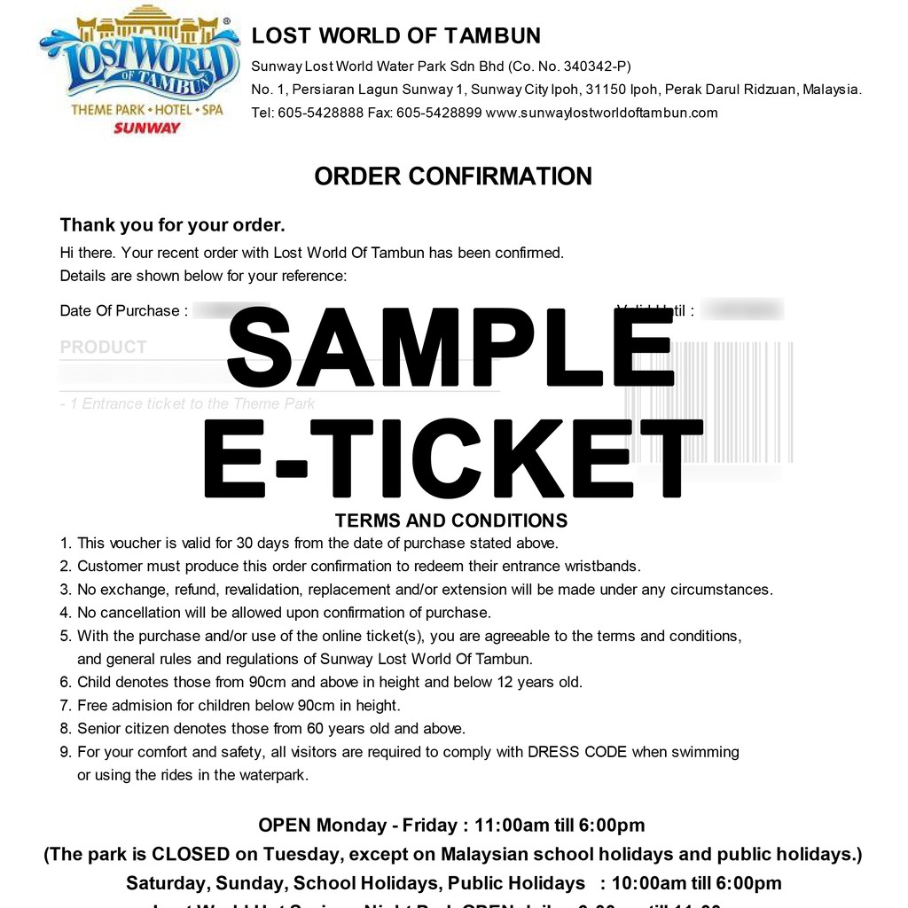 Guests will have to present these printed tickets at the lost world tambun over the counter in exchange of the admission wristbands.